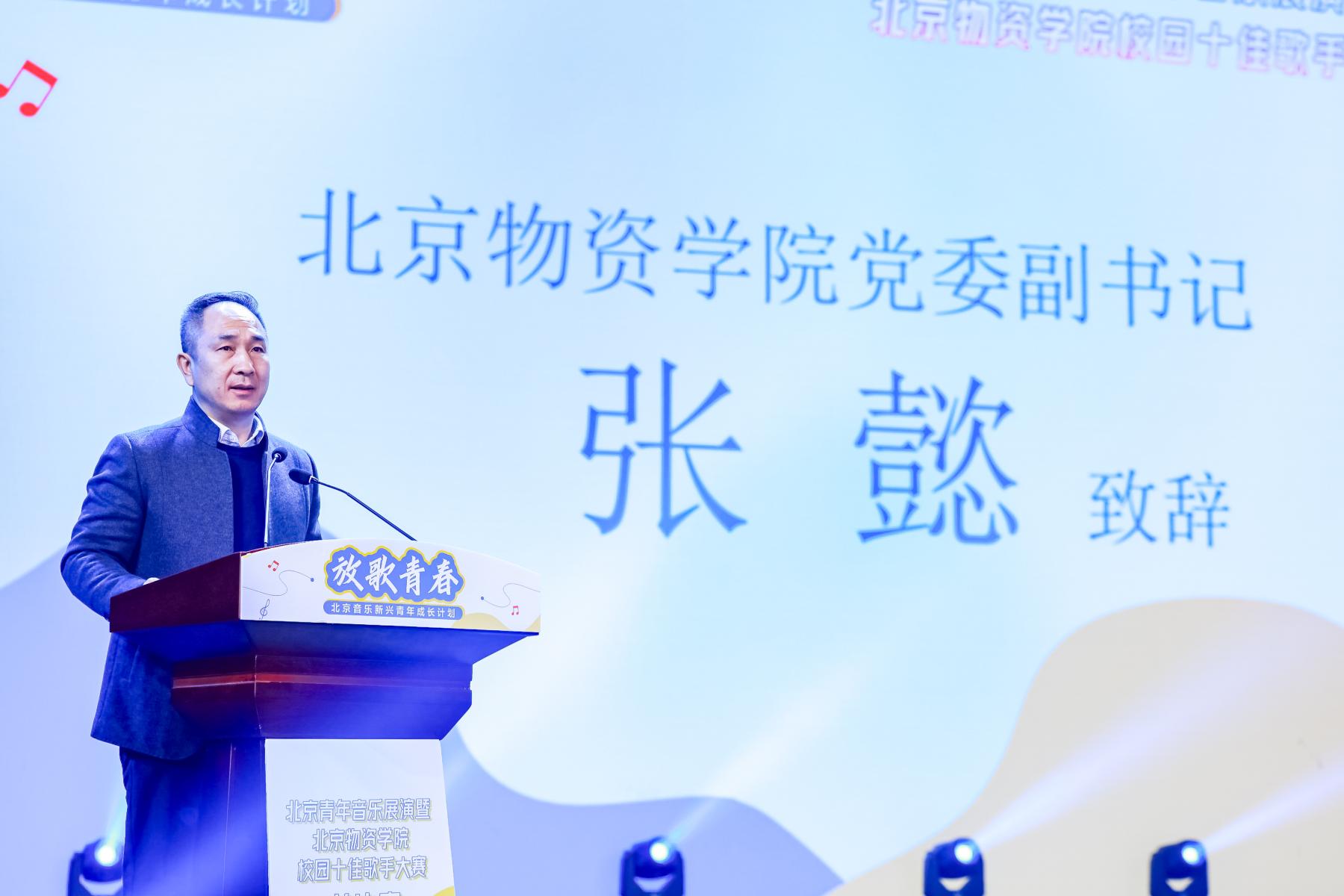 党委副书记张懿对领导、专家、来宾的到来表示热烈欢迎,他表示“放歌青春”计划为音乐领域的新兴青年提供了广阔的发展空间和艺术舞台,为首都文化建设贡献了青春力量。张书记提到,学校在艺术教育方面取得了辉煌成就,学校的合唱团、舞蹈团、话剧团和管乐团均代表了国家和北京市的最高艺术水平,多次在全国和国际比赛中荣获佳绩,为学校和首都赢得了荣誉。今晚的十佳歌手大赛是同学们展示自我、传递梦想、编织青春的舞台,希望歌手们能够发挥出最佳水平,展现出最亮丽的自我,为学校的美育事业再添光彩。