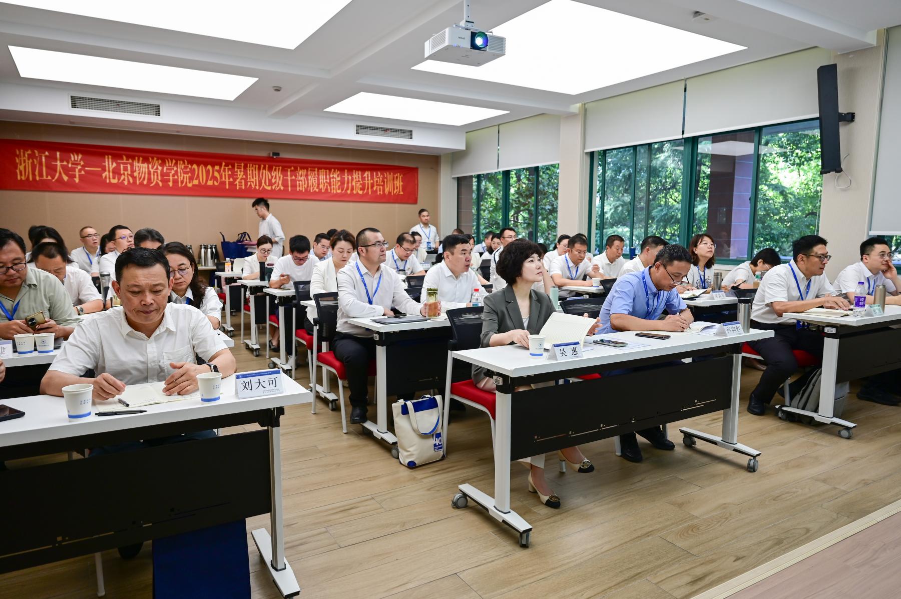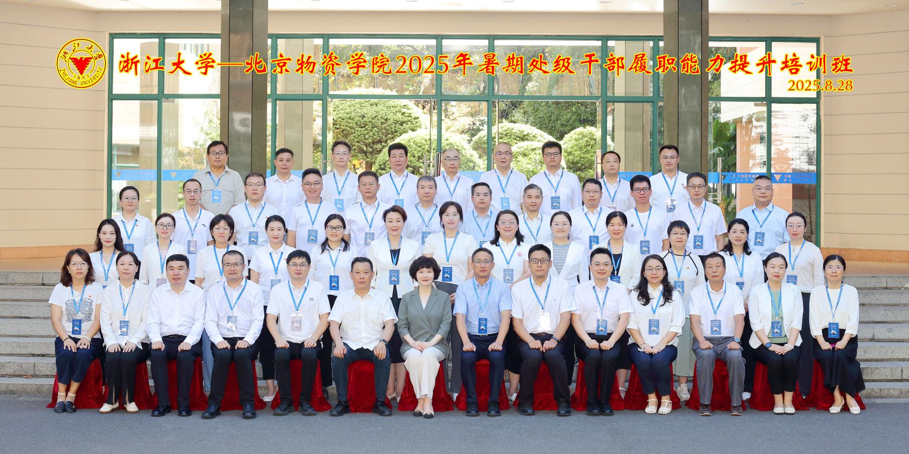 2025年暑期处级干部履职能力提升培训班在全国干部教育培训浙江大学基地顺利开班。本次培训由党委书记吴惠亲自带队,党委副书记卢向红,党委常委、副院长刘大可、张闯,校长助理高杰出席。学校职能部门和二级学院负责人等50名干部参加培训。