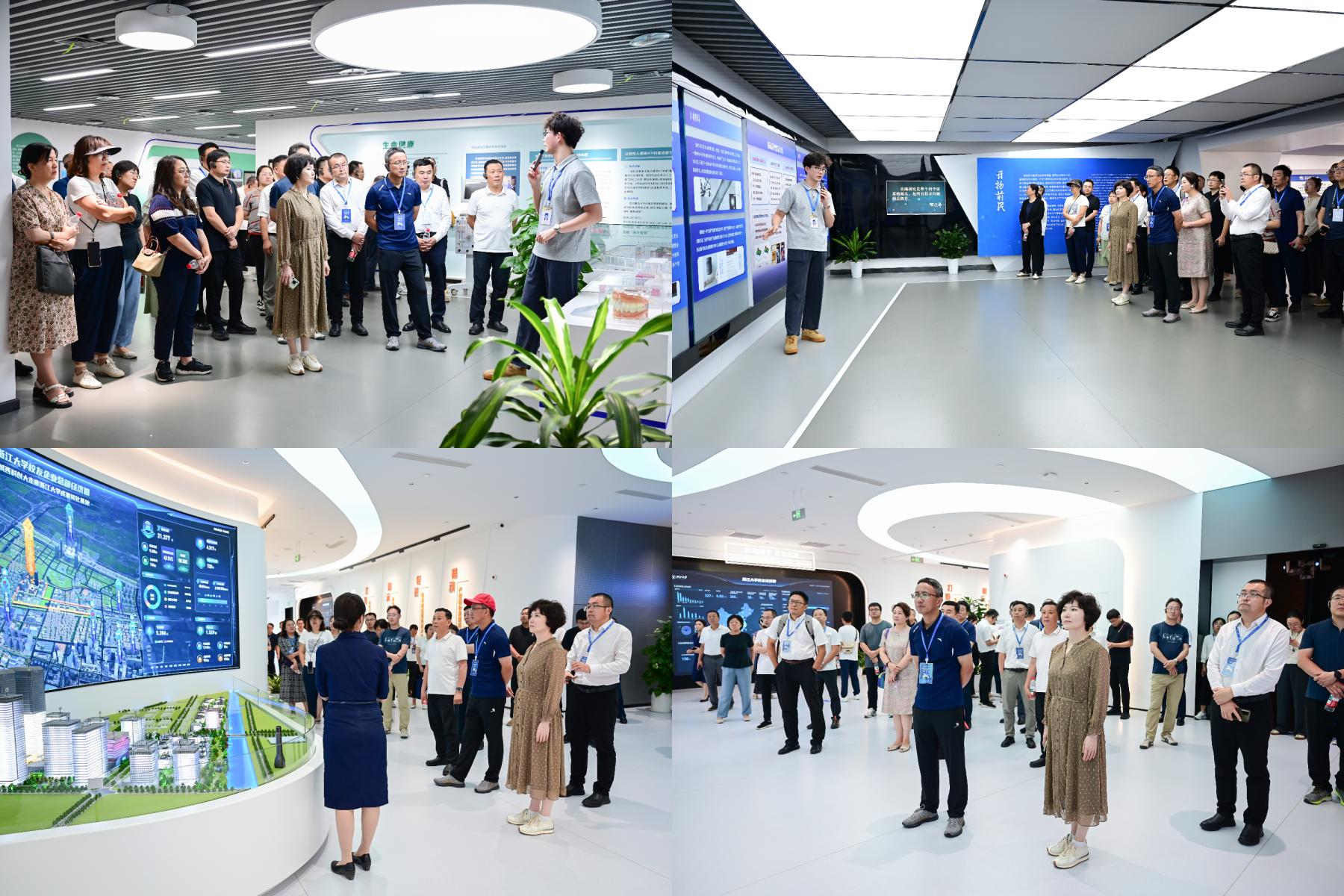 在浙江大学科技创新馆,学员们沿着“科技创新之路”主线,系统了解了学校面向世界前沿、服务国家战略的区域创新体系。从脑机智能一体化系统、高性能射频芯片,到飞机装配自动化技术、复合地基理论与现代农业成果,一系列突破性科技成果生动展现了高水平大学作为教育、科技、人才重要结合点的核心作用。随后,学员们转入浙大校友企业总部经济园,深度考察这一区校合作共建的高能级产业平台。通过实地观摩和专题讲解,大家深入了解了园区在科技成果转化、创新企业孵化和产业链集聚方面的运营模式,切身感受到“名校+名城”战略下产学研深度融合的实践成效。
