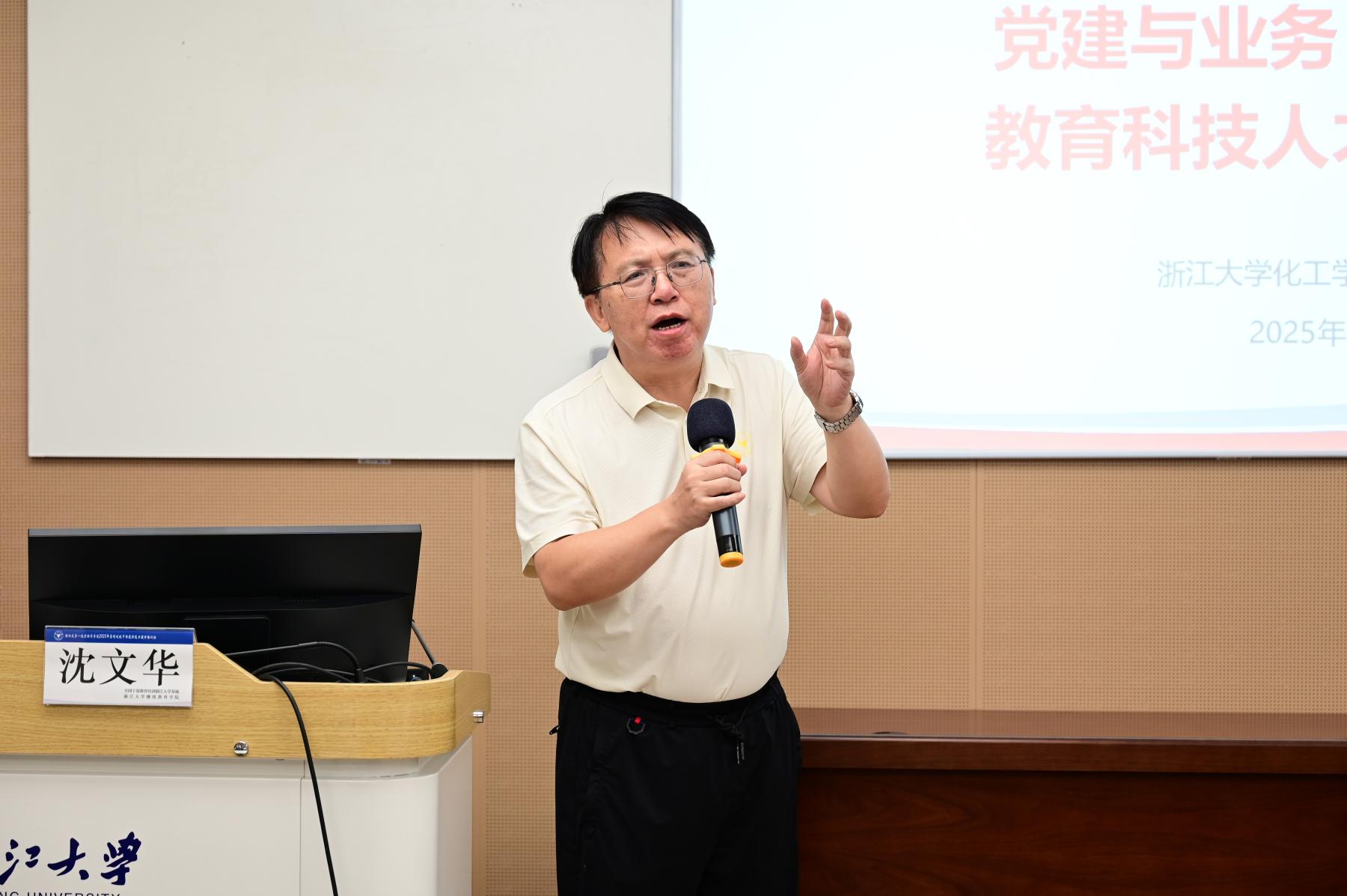 浙江大学化学工程与生物工程学院原党委书记、副院长沈文华以《高校院系治理现代化思考与实践》为题,结合自身丰富的管理与党建工作经历,系统阐释了党建与业务“双融双促”的理念。他通过鲜活案例分享了二级学院在管理机制创新、实践探索和融合推进方面的典型经验,展现了党建引领与业务发展深度融合的成效与路径,为参训干部带来切实可行的思路和方法。
