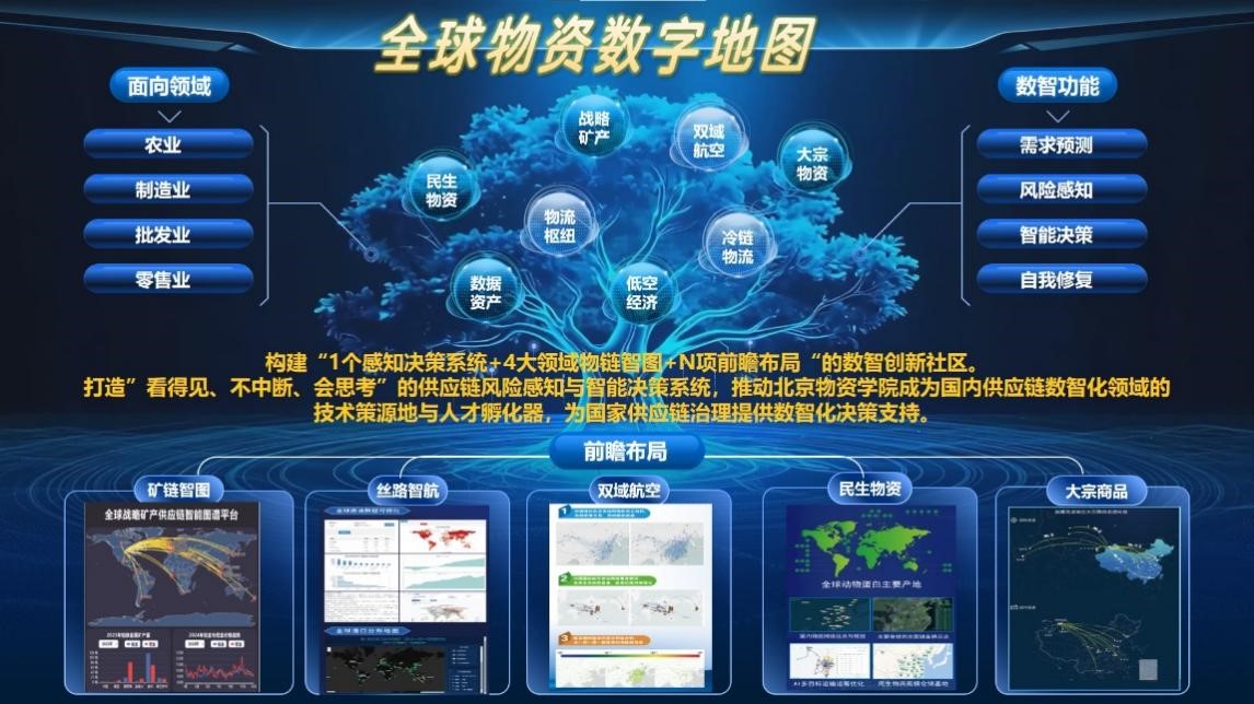 创新性提出建设“全球物资数字地图”数智供应链创新社区,打造数智供应链的“物院方案”。“全球物资数字地图”作为有组织科研的核心载体,系统构建形成“1个感知决策系统+4大领域数智地图+N项前瞻布局”的数智创新社区。“全球物资数字地图”已在十大关键子图建设上取得实质性进展,包括:供应链枢纽数智地图、航空供应链数智地图、区域仓储资源数智地图、民生物资数智地图、战略金属数智地图、全球原油数智地图、区域大宗物资数智地图、供应链数据数智地图、供应链人才数智地图、供应链法律数智地图。初步构建起覆盖“资源-物流-数据-人才-规则”的全维度、场景化数字映射体系,为供应链精准治理与战略决策提供系统化支撑。