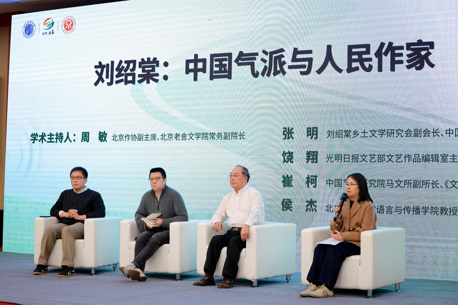 第二场论坛以“刘绍棠:中国气派与人民作家”为主题,由北京作协副主席、北京老舍文学院常务副院长周敏主持,刘绍棠乡土文学研究会副会长、中国写作学会副秘书长张明,光明日报文艺部文艺作品编辑室主任、高级编辑饶翔,中国艺术研究院马文所副所长、《文艺理论与批评》杂志副主编崔柯三位专家学者围绕刘绍棠作品的民族风格、人民立场及其对当代文学创作的启示展开深入交流。大家一致认为,刘绍棠始终扎根大地、立足人民,其文学创作既饱含浓郁地域特色,又彰显鲜明中国气派,为新时代文学创作提供了丰厚滋养。