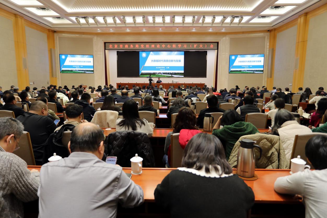 党委副书记、院长左敏应邀出席北京市商务局党组理论学习中心组学习(扩大)会,以“大数据时代商务创新与发展”为题作专题辅导报告。市商务局领导班子成员、驻局纪检监察组及机关全体干部、直属单位班子成员等约260人参加学习。