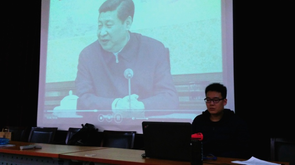 随后,通过党员同学对习近平总书记系列讲话的解读和对身边的党员榜样杨洪璋老师事迹的讲解,使同学们更进一步认识到“两学一做”不仅仅是一个在新闻中出现的高大上词汇,更与我们的生活息息相关。