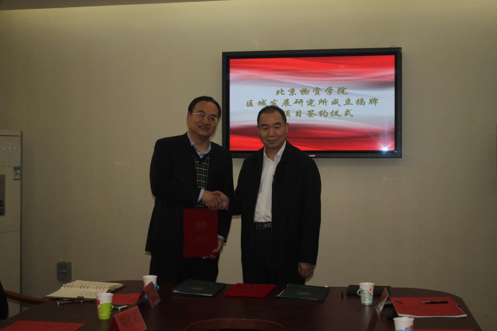2015年1月23日,区域发展研究所成立揭牌暨项目签约仪式在我校商学院404会议室举行。出席仪式的领导和嘉宾有校党委书记李石柱,国家发展和改革委员会合作中心执行总监、区域合作与开发研究所所长景朝阳,北京国宏公共治理与政策研究院副院长高玮,北京国家新型城镇化发展产业联盟秘书长曹晶,以及我校发展规划办公室主任胡占君,科研处处长王可山,信息学院教授吴海建,商学院院长魏国辰,商学院党委副书记(主持工作)于冠华,党委副书记常娥,商学院教授金海水,还有部分师生共同参加了仪式,商学院科研副院长吕波主持了签约仪式。