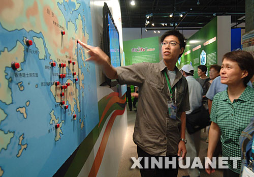 6月28日,观众在参观展览。从当日起到7月17日,在首都博物馆展出的香港特别行政区十周年成就展对公众免费开放。展览通过生动的文字、精彩的图片、丰富的实物、有趣的互动游戏等介绍了香港特别行政区十年来取得的成就。 新华社记者罗晓光摄