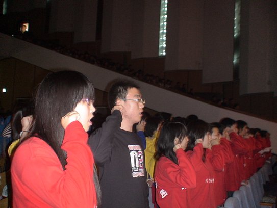 奥运志愿者骨干营开营仪式”中激动人心的一幕。身着红黄蓝绿黑五色奥运志愿者服装的骨干团成员庄严宣誓,他们将会遵守自己的承诺,积极参加奥运志愿者服务工作。这些骨干团成员是从各学院各系学生中选拔上来的奥运志愿者积极分子,下一段时间他们将会参加由学校组织的拓展训练、知识培训、礼仪培训等奥运志愿者培训项目。