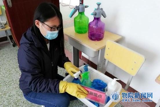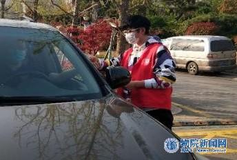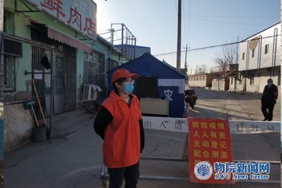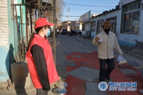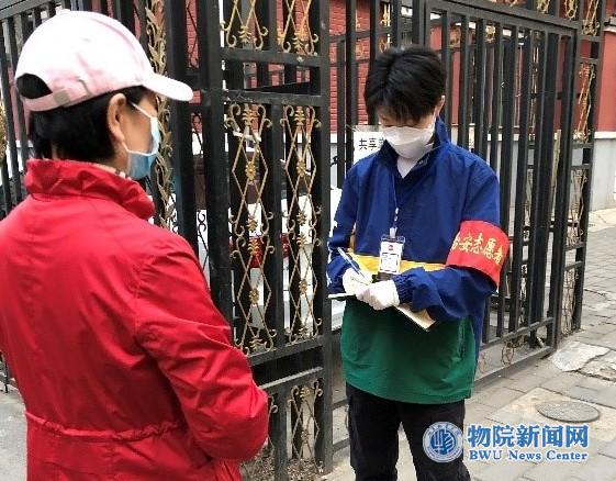 而作为一名预备党员的王雪莹同学,在看到社区征集志愿者的通告后,踊跃报名参与到了社区志愿服务当中。社区内青年工作者较多,社区人员流动也较大,每日的消毒杀菌工作量骤增,他所承担的志愿服务就包括给每单元的邮箱进行消毒杀菌,以确保居民在收取信件时不会接触到信箱上残留的病毒或细菌。除此之外,由于进出社区岗哨由居委会工作人员承担,工作人员数量有限,轮班值岗偶尔会出现空缺,他也承担过岗哨值班任务。主要负责小区拦截外地返京人员和进出人员的登记以及指导快递员将快递放置规定区域,以便居民自取。