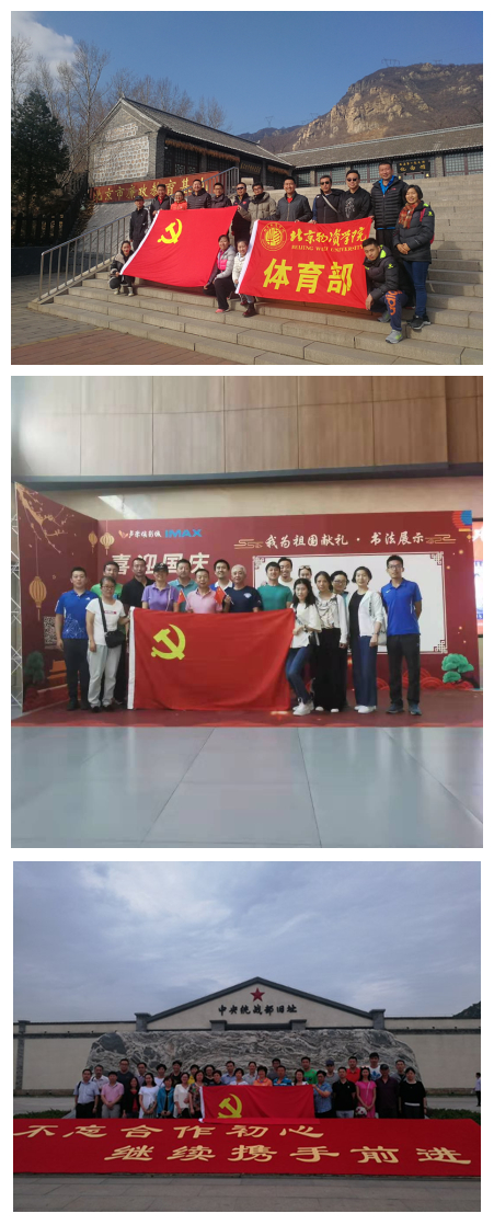 支部党员先后远赴保定白洋淀、天津盘山、河南红旗渠、河南兰考、怀柔庙上村等革命圣地进行“参观学习红色爱国教育基地”、“支部党员进社区服务”等活动,通过不同形式的学习,真正让支部政治生活严起来、实起来、活起来,并且不断增强支部教师们的时代性、原则性和战斗堡垒作用。体育部直属党支部加强教师党建学习、提升体育部直属党支部教师的成就感和归属感,凝聚人心,以实际行动促进学校各项事业的顺利发展。