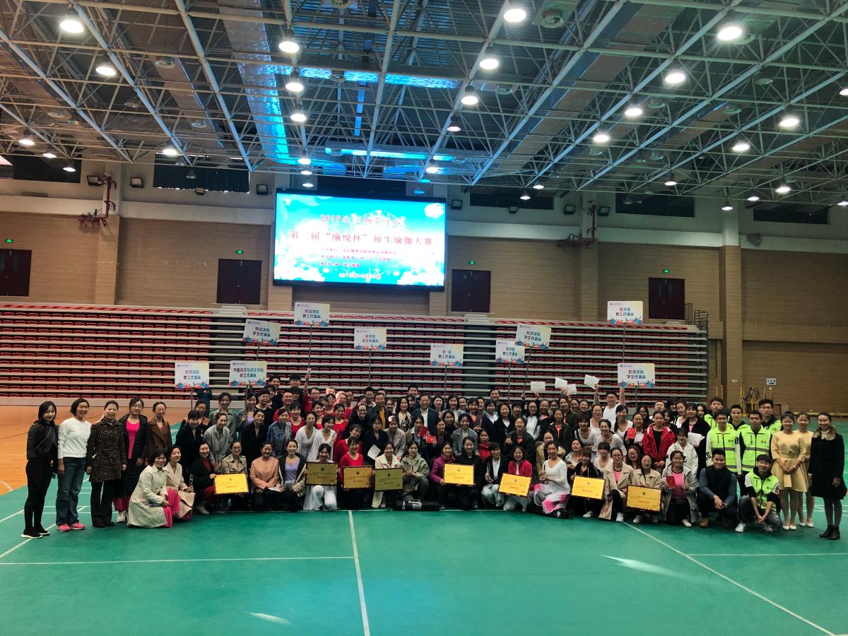 师生瑜伽比赛,“瑜伽师生同台竞技”揭开了物院师生体育锻炼的新篇章,大大丰富师生课余生活,增进友谊,收获健康,有效推动了师生健身运动的全面发展。体育部利用中午午休时间为全校教职工开办“健康监测、太极拳、瑜伽、健美操、羽毛球”等健身技能培训活动。全校教职工热情参与,认真学习,积极锻炼,掀起了一股参与体育运动、关注身心健康的热潮。