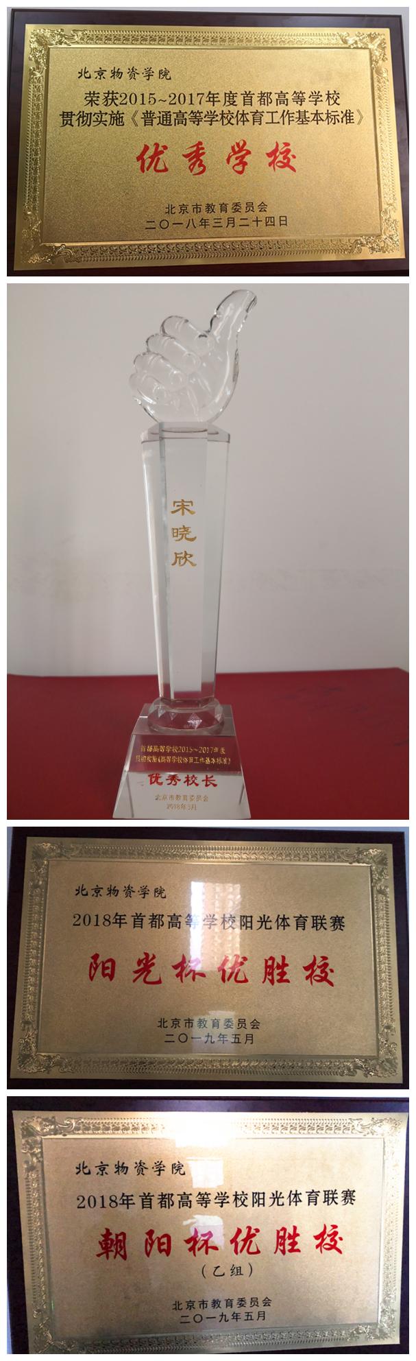 2017年1月,学校决定将“体育教学部”更名为“体育部”。随着名称的变更,体育部的职责与工作范围进一步扩大,在承担学校公共体育课教学、群体活动、训练竞赛等主要职责的基础上,增加为学校体育文化事业全面发展提供服务、为学校教职员工身体健康提供指导的职责。体育部下设教学教研室、群体教研室、办公室、体质健康测试中心及体质健康监测实验室。荣获2015-2017年度首都高等学校贯彻实施《普通高等学校体育工作基本标准》优秀学校,主管校领导宋晓欣副书记获“学校体育工作优秀校长”称号。2016到2018年连续三年同时获得首都高等学校阳光体育联赛“阳光杯”、“朝阳杯”双料优胜校,这是对体育部近三年,体育代表队建设以及群众体育开展工作的最高褒奖。2017、2018连续两年,体育部获评校级优秀处级单位。2018、2019年连续两年,王彦英主任应邀在首都高校体育部主任书记会议上作交流发言。来自北京市普通高校及高职院校等65所高校的体育部主任、书记及大体协的各分会负责人共100余人参加。会议邀请部属和北京市属先进典型高校各一所在会上做交流发言。