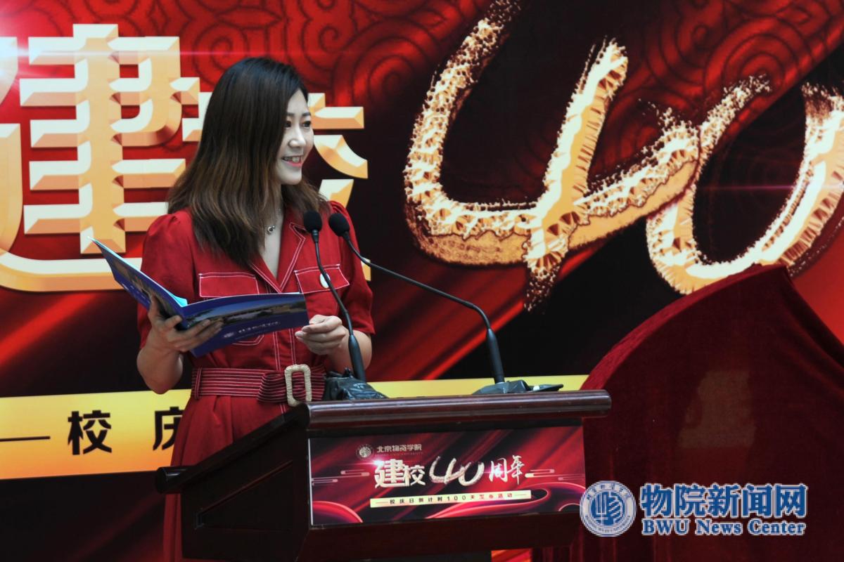 校友工作办公室主任、教育基金会秘书长、校友总会秘书长余茜宣读《必威app手机官方网站入口下载